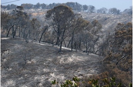 by authorities as “10 acres of medium brush burning uphill.”