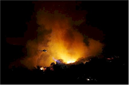Firefighters sought assistance from water-dropping helicopters